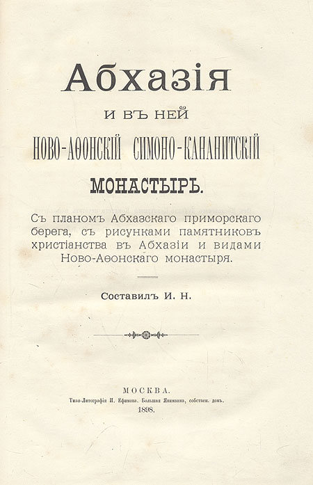 Книга "Абхазия и в ней Ново-Афонский Симоно-Кананитский монастырь" является историческим и культурным путеводителем по Абхазии и ее главной достопримечательности - монастырю Симоно-Кананитский.