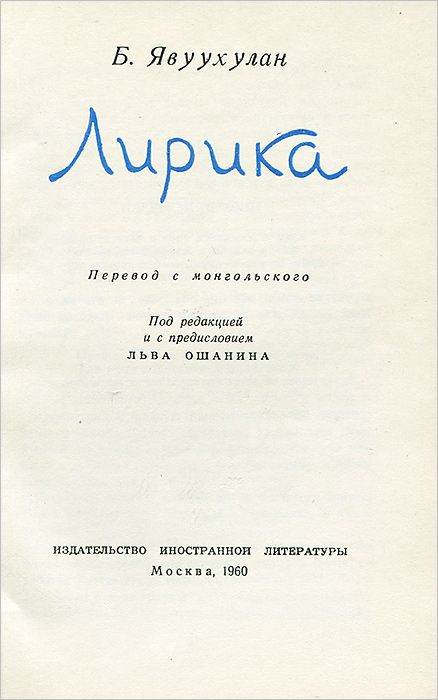 Книга "Бэгзийн Явуухулан. Лирика" - это сборник стихотворений, написанный монгольским поэтом Бэгзийном Явуухуланом.