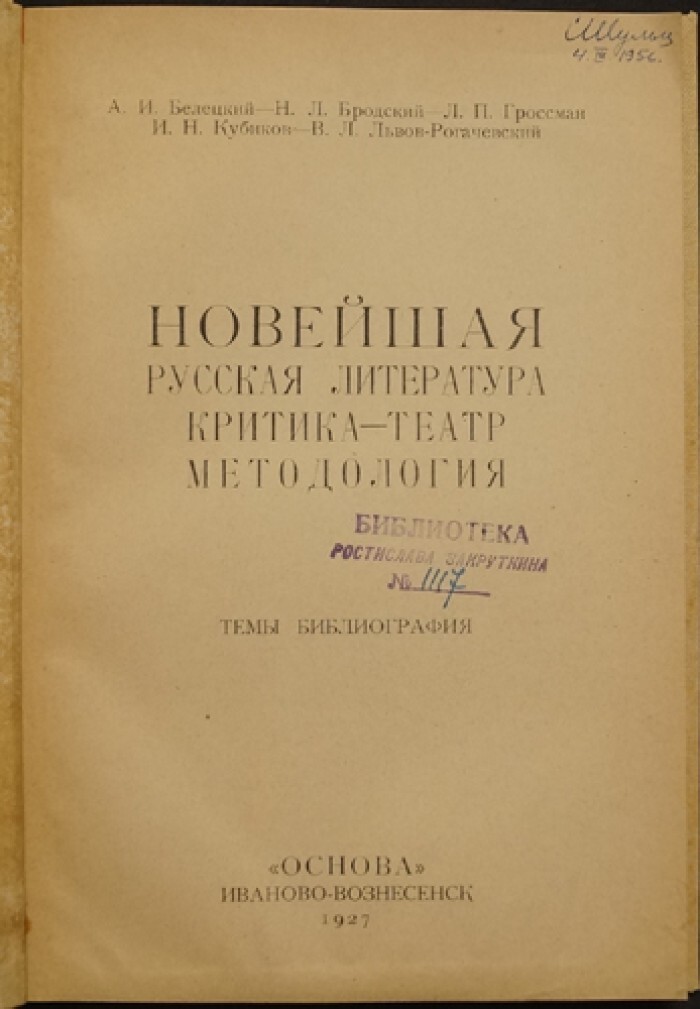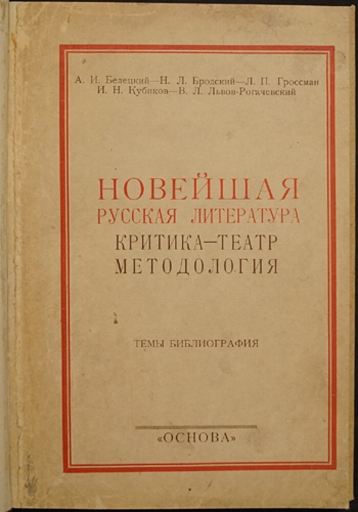 Белецкий А.И., Бродский Н.Л., Гроссман Л.П., Львов-Рогачевский В.Л. Новейшая русская литература. Критика - театр методология