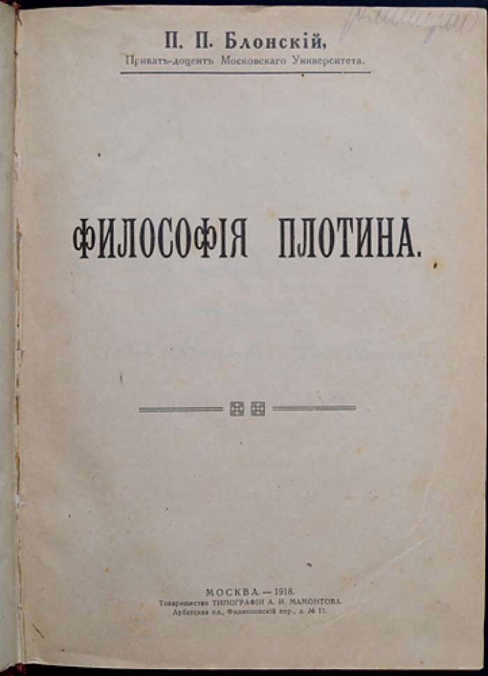 Блонский П. П. Философия Плотина.