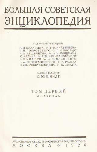 Первое издание "Большой Советской Энциклопедии" было выпущено в 1926 году и стало настоящим событием в истории советской книжной культуры. Комплект из 65 книг включает в себя более 60 тысяч статей, 175 тысяч иллюстраций и 15 тысяч таблиц.