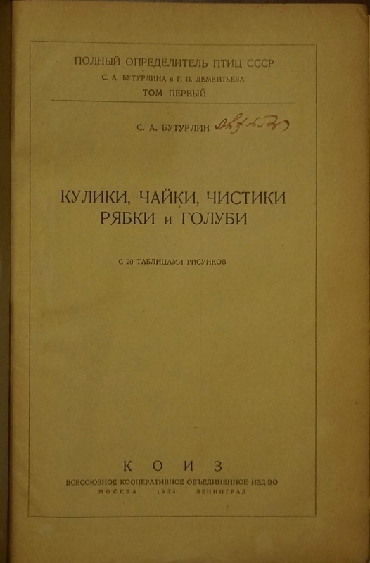 Бутурлин С.А., Дементьев Г.П. Полный определитель птиц СССР. В пяти томах
