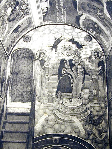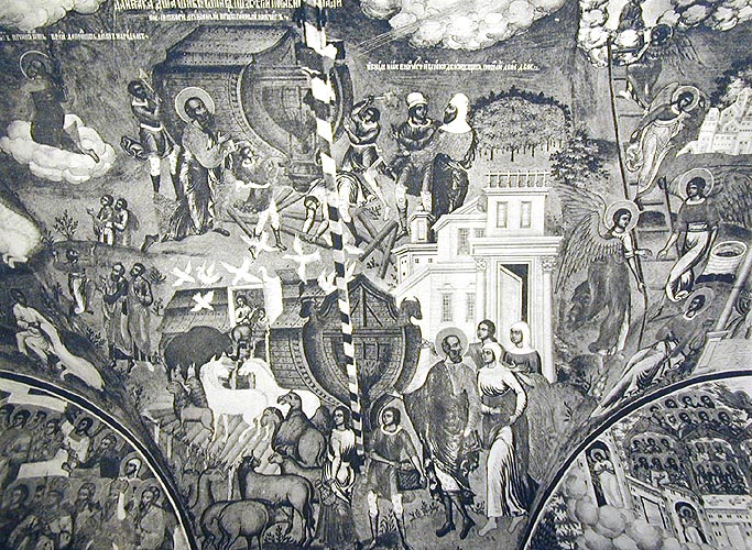 Кроме того, автор исследует украшения и фрески внутри церкви, рассматривая их символическое значение и исторический контекст. Он обращает внимание на детали картины на стенах, включая изображения святых, библейских сцен и христианских символов.
