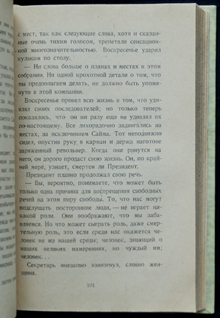 По мере развития сюжета и повествования, мир становится все более запутанным и непонятным для Саймса. Он начинает сомневаться в своих новых друзьях и их действиях, а также в своей собственной роли в этой игре. Главным вопросом книги становится искание истины в хаосе жизни и существования.