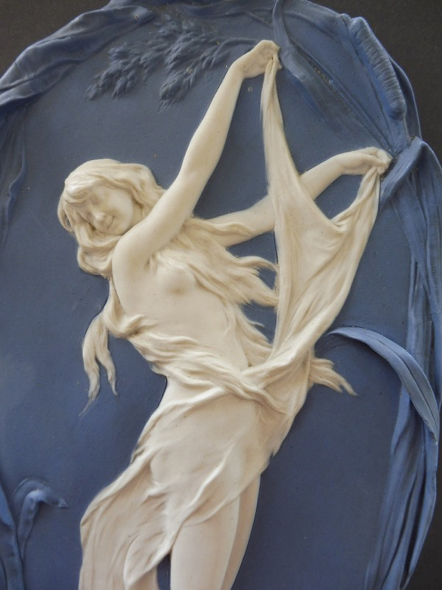 Декоративный настенный рельеф "Девушка-цветок" в стиле модерн (арт нуво). Фарфор, бисквит. Богемия, начало XX века