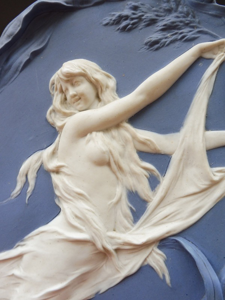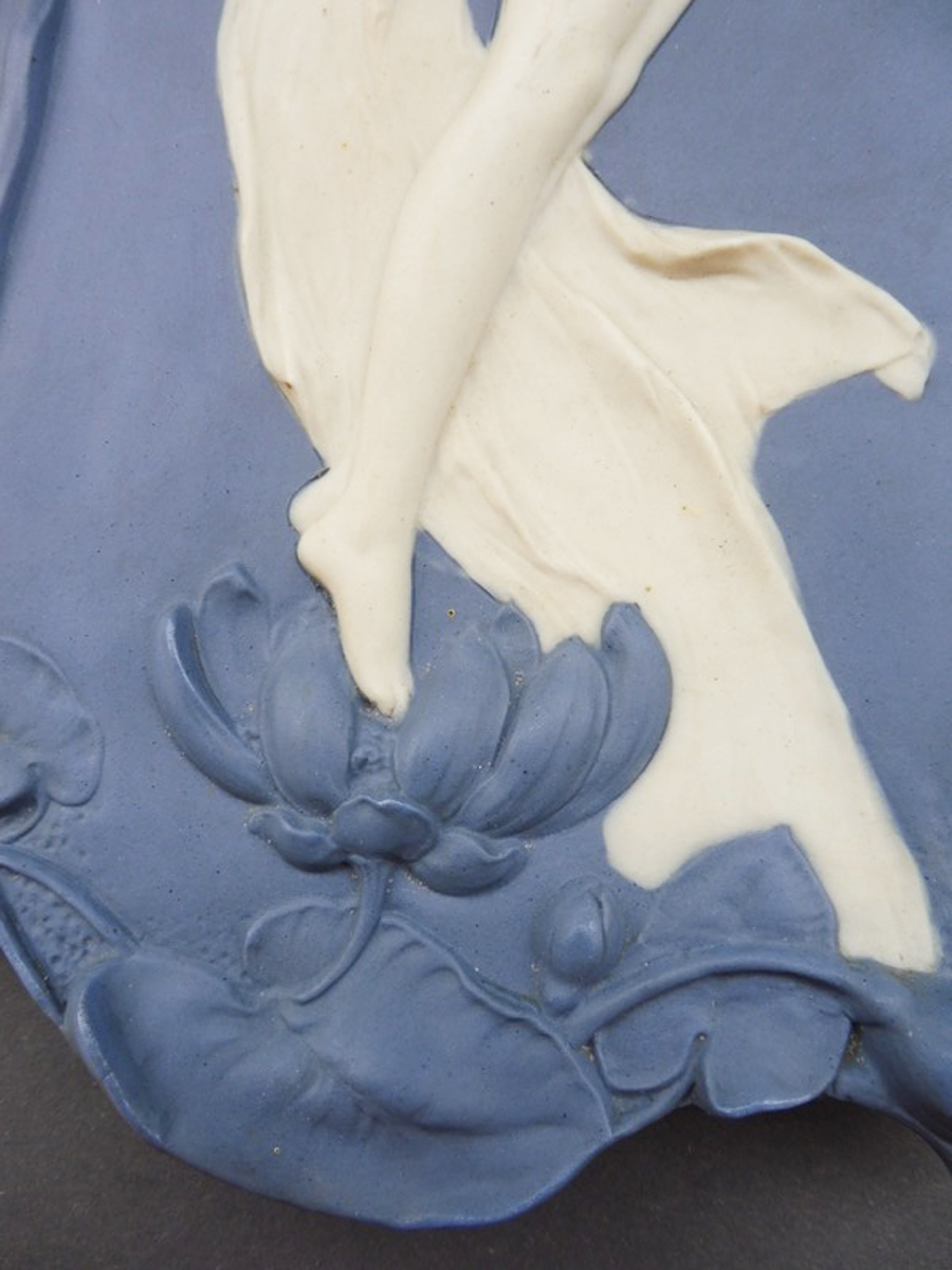 Декоративный настенный рельеф "Девушка-цветок" в стиле модерн (арт нуво), выполненный из фарфора и бисквита, отличается высоким качеством исполнения и уникальным дизайном, что делает его предметом поистине коллекционной ценности.