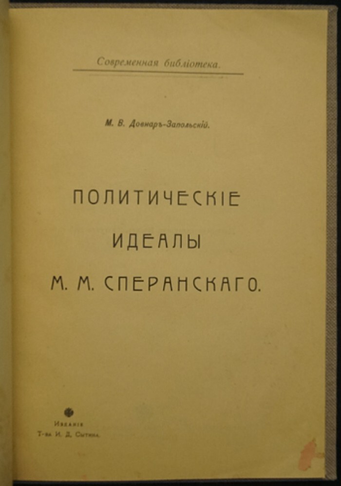 Довнар-Запольский М.В. Политические идеалы М.М.Сперанского