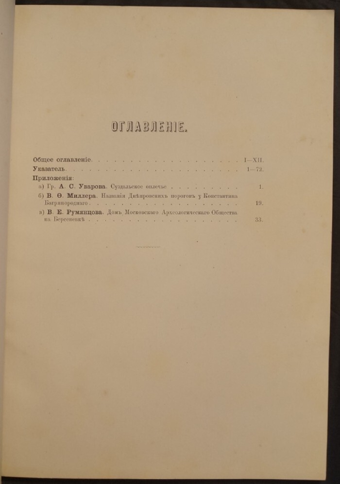 Древности. Труды Императорского Московского археологического общества. Том пятый, выпуск I: Общее оглавление и указатель к первым четыр