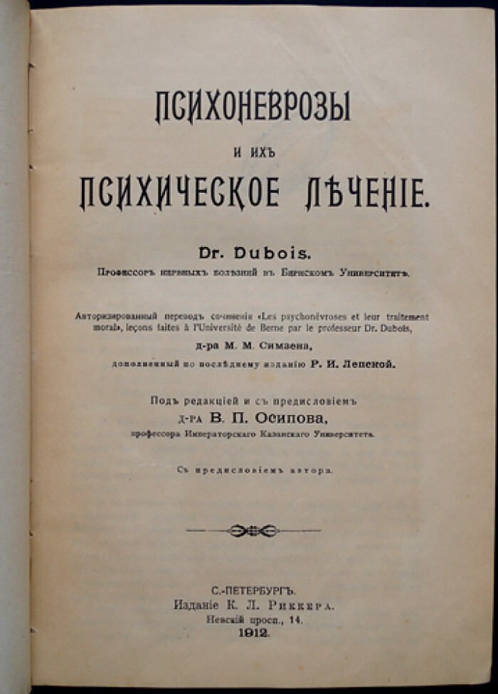 Dubois Dr. Психоневрозы и их психическое лечение.