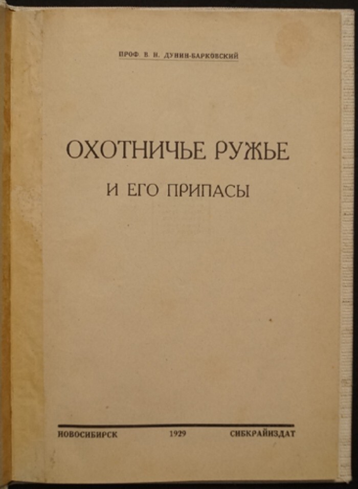 Дунин-Барковский В. Охотничье ружье и его припасы.