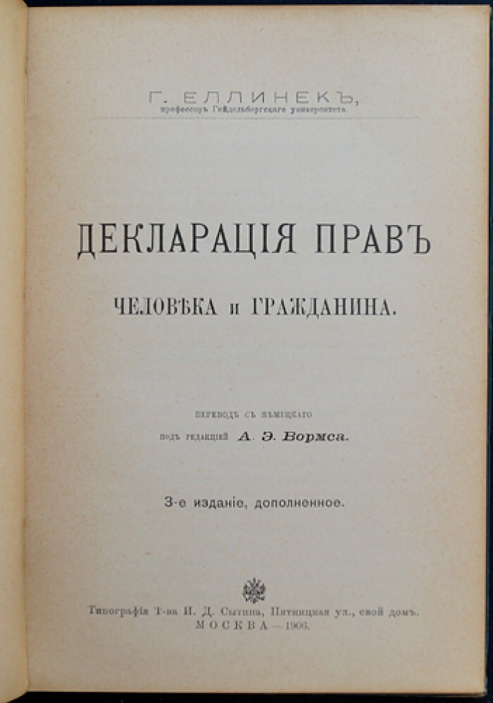Книга "Декларация прав человека и гражданина" - это работа Габриеля Еллинека, в которой он анализирует и объясняет Всеобщую декларацию прав человека, принятую Организацией Объединенных Наций в 1948 году.