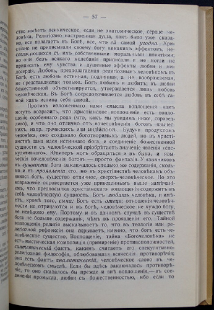 Фейербах утверждает, что христианская религия является проекцией человеческих фантазий и потребностей на небесное существо по имени Бог. Бог, по его мнению, является вымыслом и воплощением идеалов и желаний, которые люди недостаточно сильны или способны реализовать в реальной жизни. Таким образом, христианская религия становится утешением для людей, заключенных в социальные, экономические и эмоциональные ограничения.