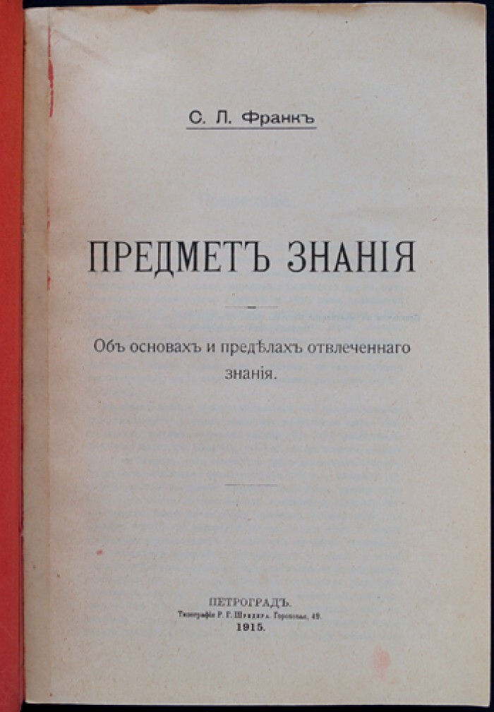 Франк С.Л. Предмет знания. Об основах и пределах отвлеченного знания