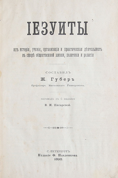 Книга "Иезуиты, их история, учение, организация и практическая деятельность в сфере общественной жизни и религии" является исследованием об одном из самых влиятельных и тайных общественных организаций – Иезуитском ордене.