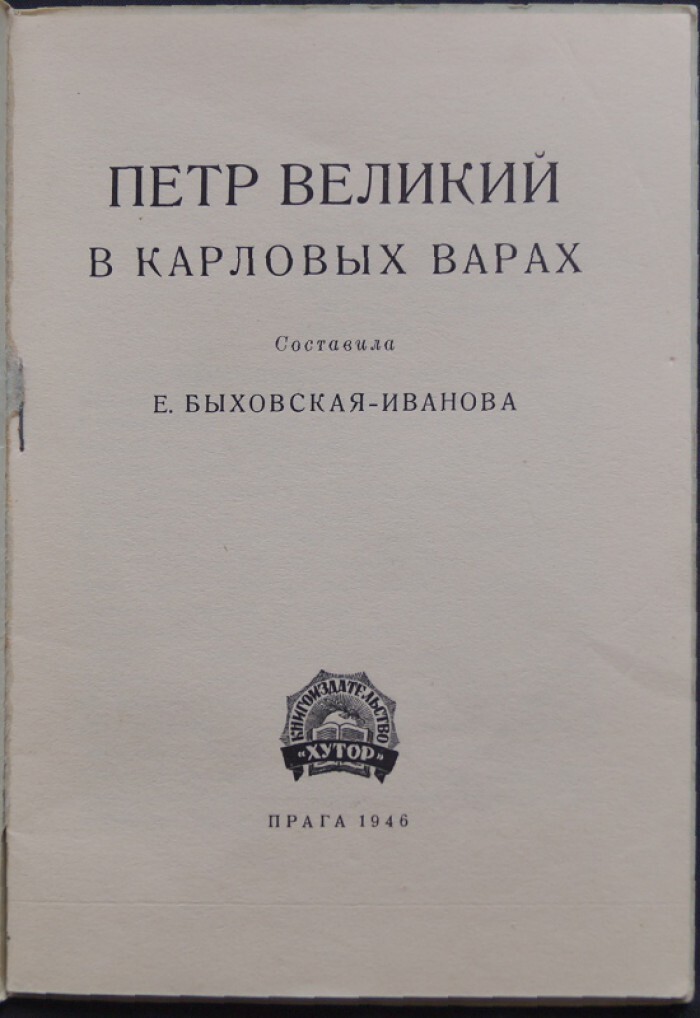 Книга "Петр Великий в Карловых Варах" написана Елизаветой Ивановой-Быховской и посвящена визиту российского императора Петра Великого в знаменитый курорт Карловы Вары.