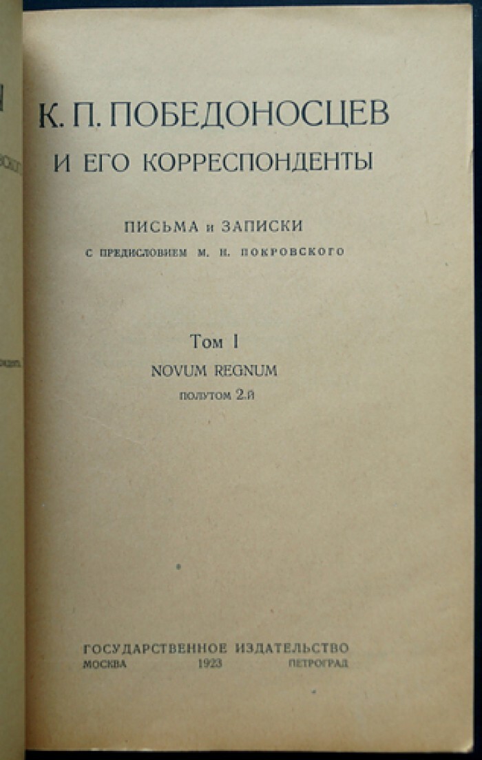 К.П. Победоносцев и его корреспонденты. Письма и записки: Том первый. Novum Regnum. В двух полутомах