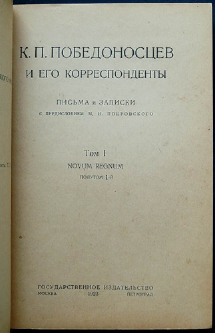 Том первый издания "К.П. Победоносцев и его корреспонденты. Письма и записки" состоит из двух полутомов, что позволяет более подробно осветить жизнь и деятельность этого выдающегося российского мыслителя.