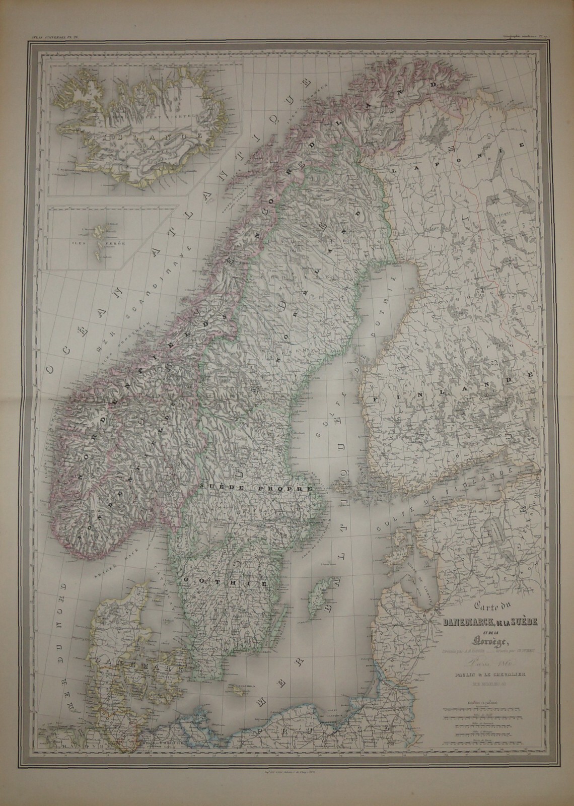 Карта Дании, Швеции и Норвегии / Carte du Danemark, de la Suede et de la Norvege