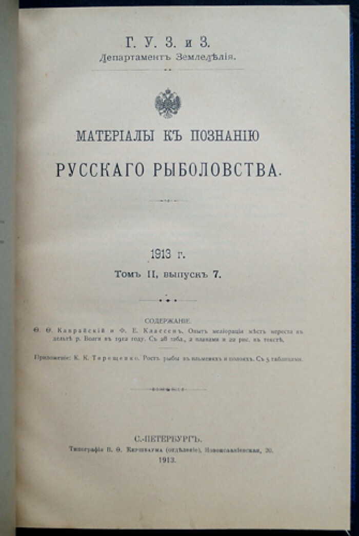 Каврайский Ф.Ф., Классен Ф.Е. Опыт мелиорации мест нереста в дельте р. Волги в 1912 году