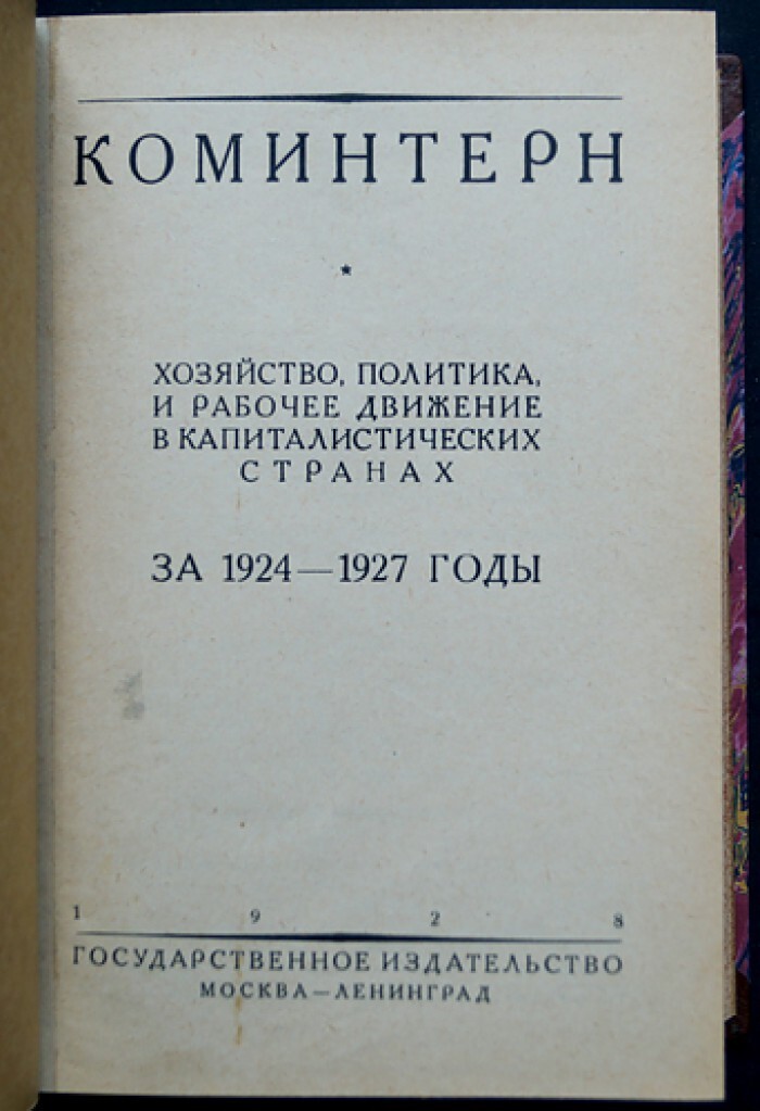 Коминтерн: Хозяйство, политика и рабочее движение в капиталистический странах. За 1924 1927 годы
