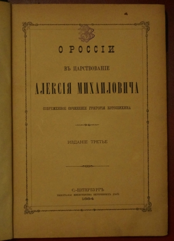 Котошихин Гр. О России в царствование Алексея Михайловича.