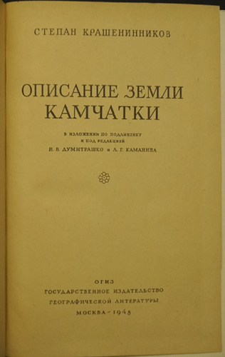 Крашенинников, Степан. Описание земли Камчатки.