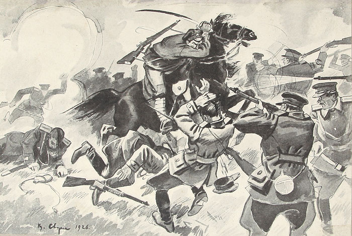 Далее книга переходит к описанию Гражданской войны, которая продолжалась с 1918 до 1922 года и была сопряжена с вооруженными конфликтами между красной армией, представляющей Советскую власть, и белыми армиями, состоящими из антибольшевистских сил и поддерживаемыми иностранными интервентами.