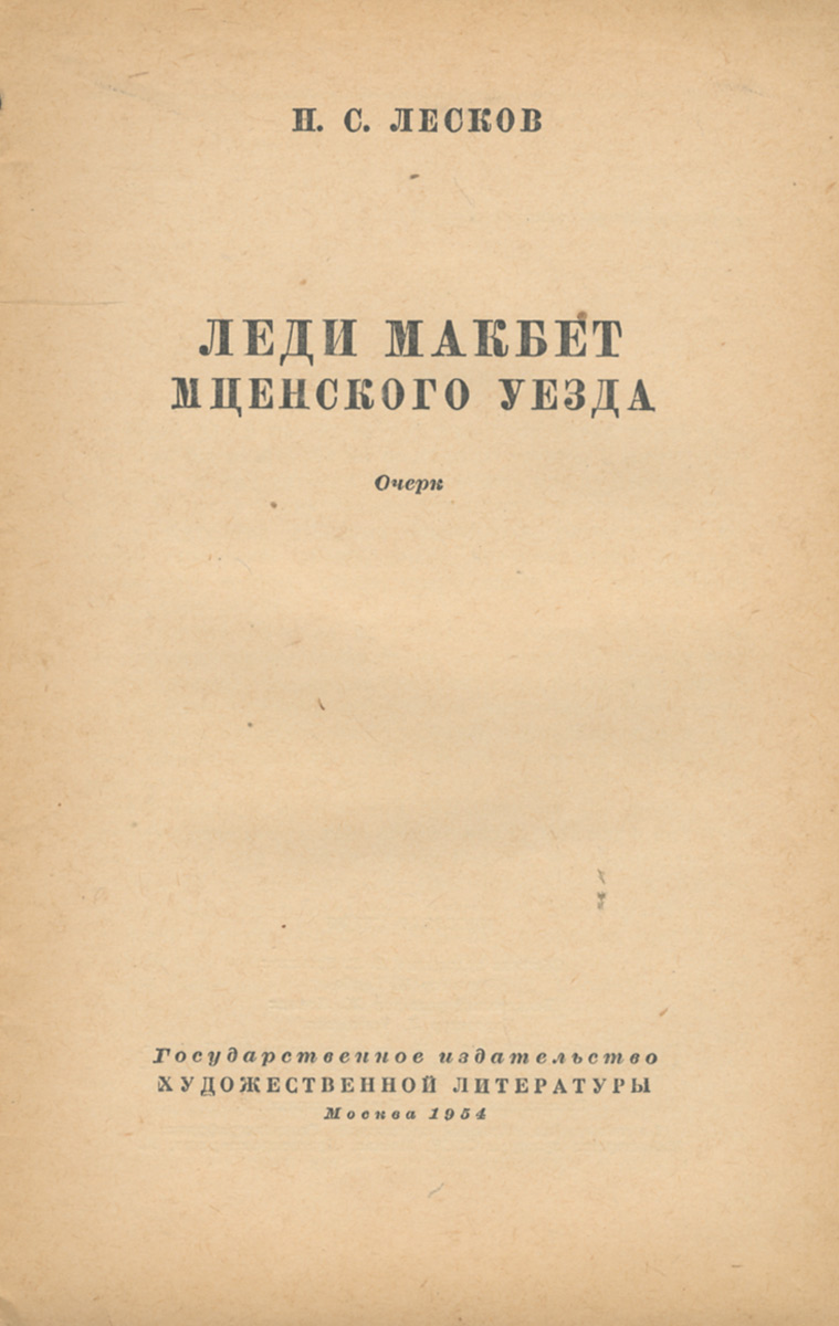 "Леди Макбет Мценского уезда" - произведение русского писателя Николая Лескова, опубликованное в 1865 году. Книга является одним из наиболее известных произведений автора и относится к жанру психологической драмы.