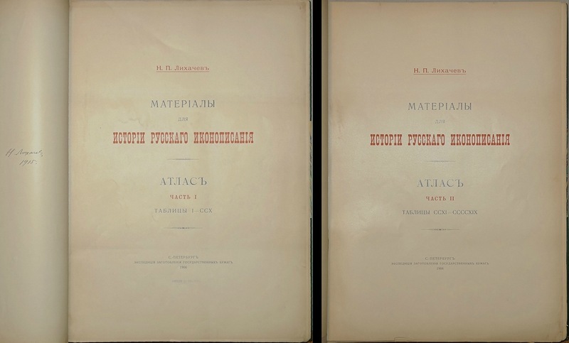 Лихачев Н.П. Материалы для истории русского иконописания. Атлас в двух частях в четырех переплетах