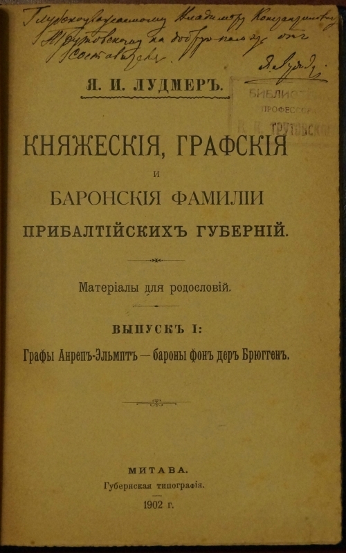 Лудмер Я.И. Княжеские, графские и баронские фамилии прибалтийских губерний. Материалы для родословий.
