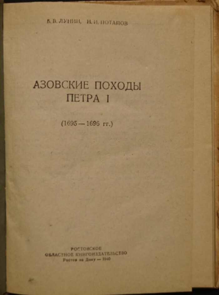 Лунин Б.В., Потапов Н.И. Азовские походы Петра I (1695-1696 гг.).