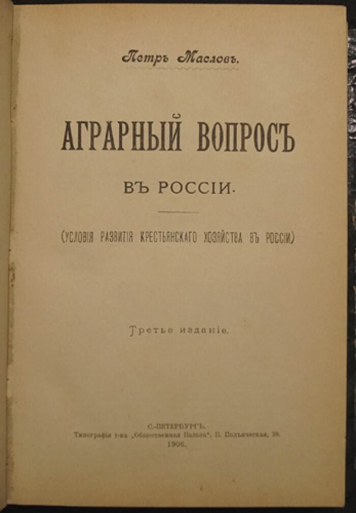 Маслов П. Аграрный вопрос в России (условия развития крестьянского хозяйства в России).