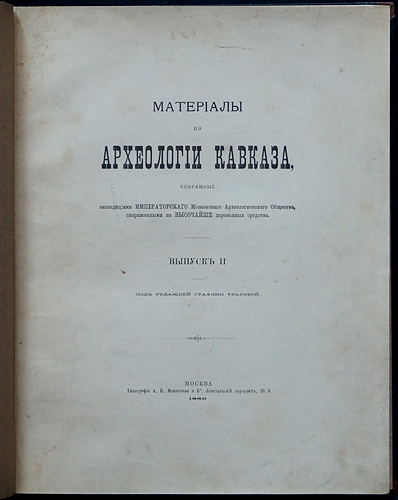 Материалы по археологии Кавказа, собранные экспедициями Императорского Московского Археологического Общества, снаряженными на Высоча