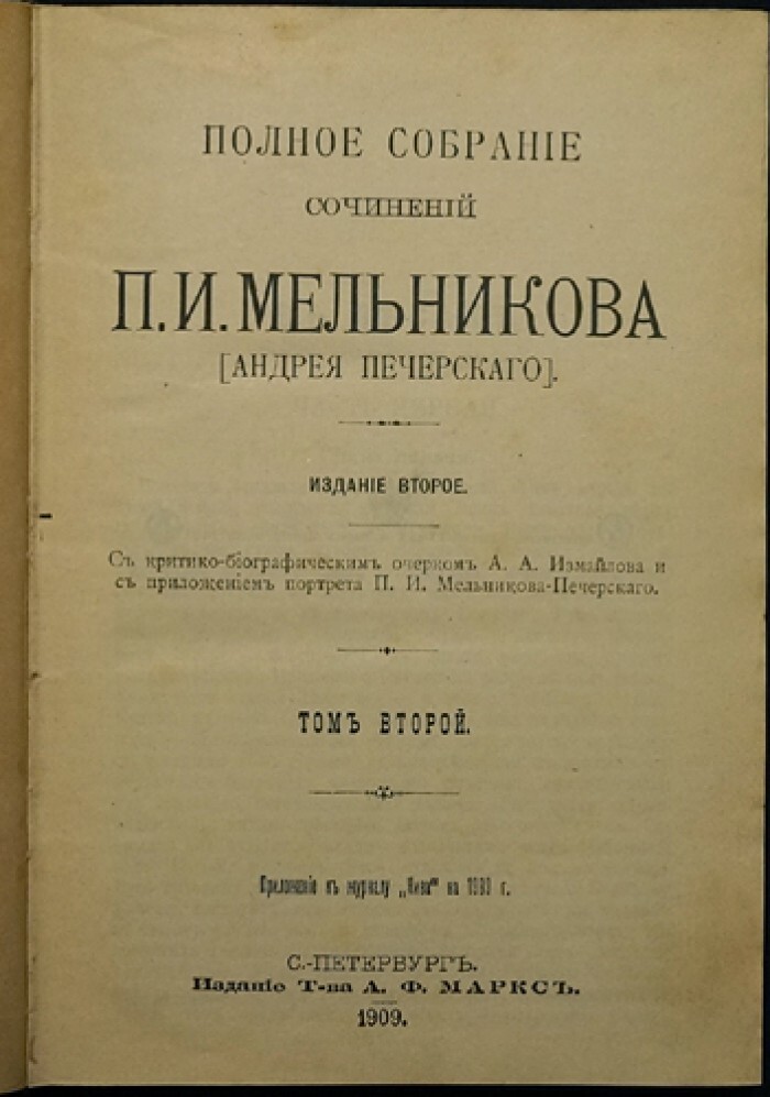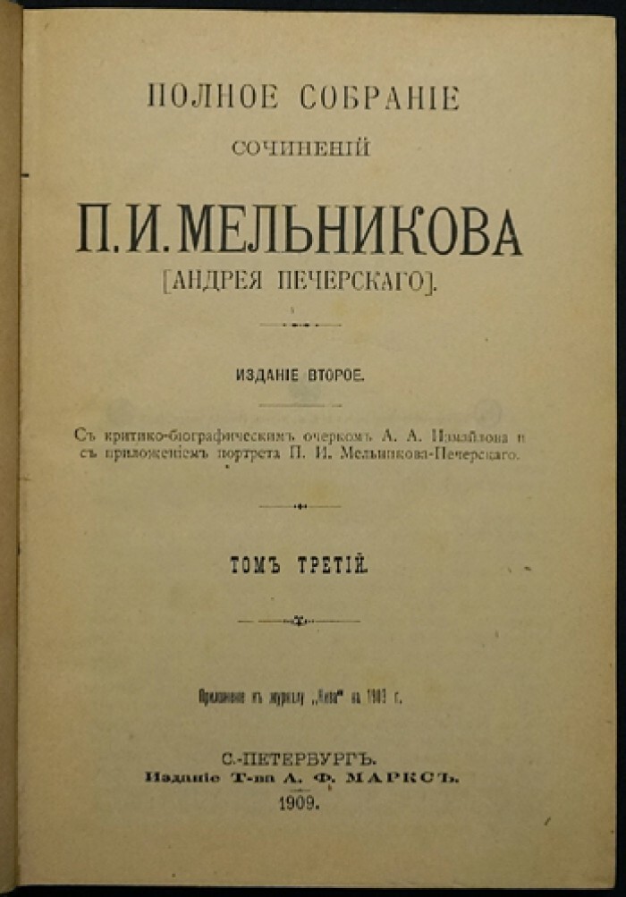 Критико-биографический очерк, приложенный к сборнику, является значимым дополнением. Он освещает жизнь и карьеру П. И. Мельникова, рассказывает о его влиянии на литературу своего времени, а также о его основных литературных темах и стиле.