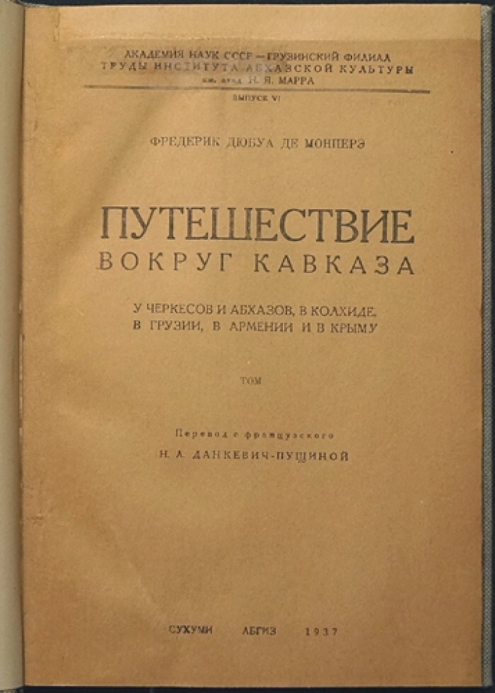 В книге "Путешествие вокруг Кавказа" Фредерик Дюбуа де Монперэ рассказывает о своем путешествии по этому региону. Книга поделена на несколько томов, а первый из них посвящен знакомству с черкесами и абхазами, а также их культурой и образом жизни.