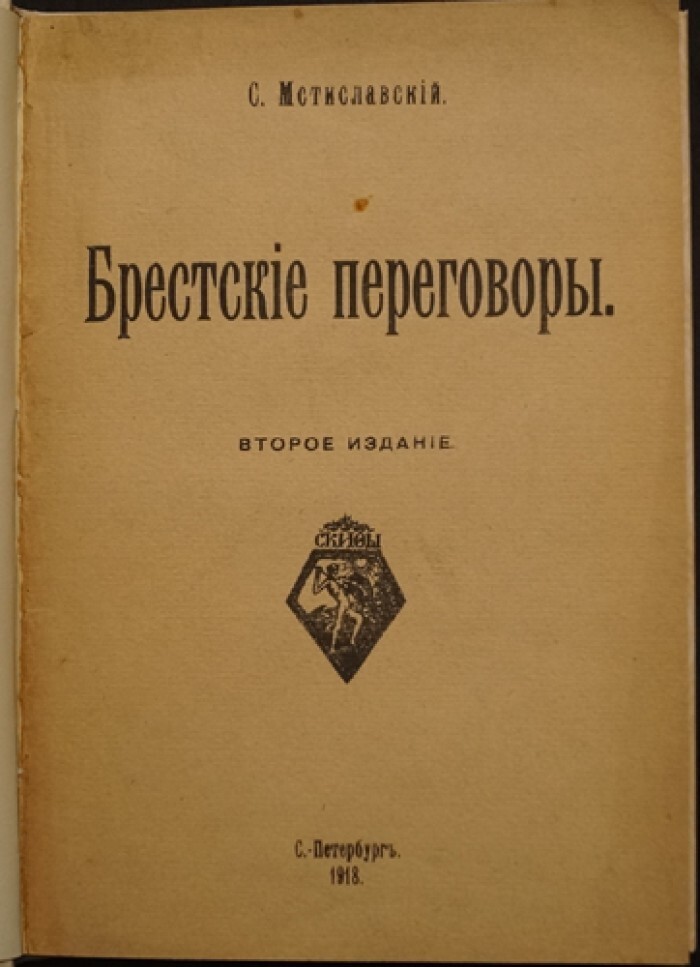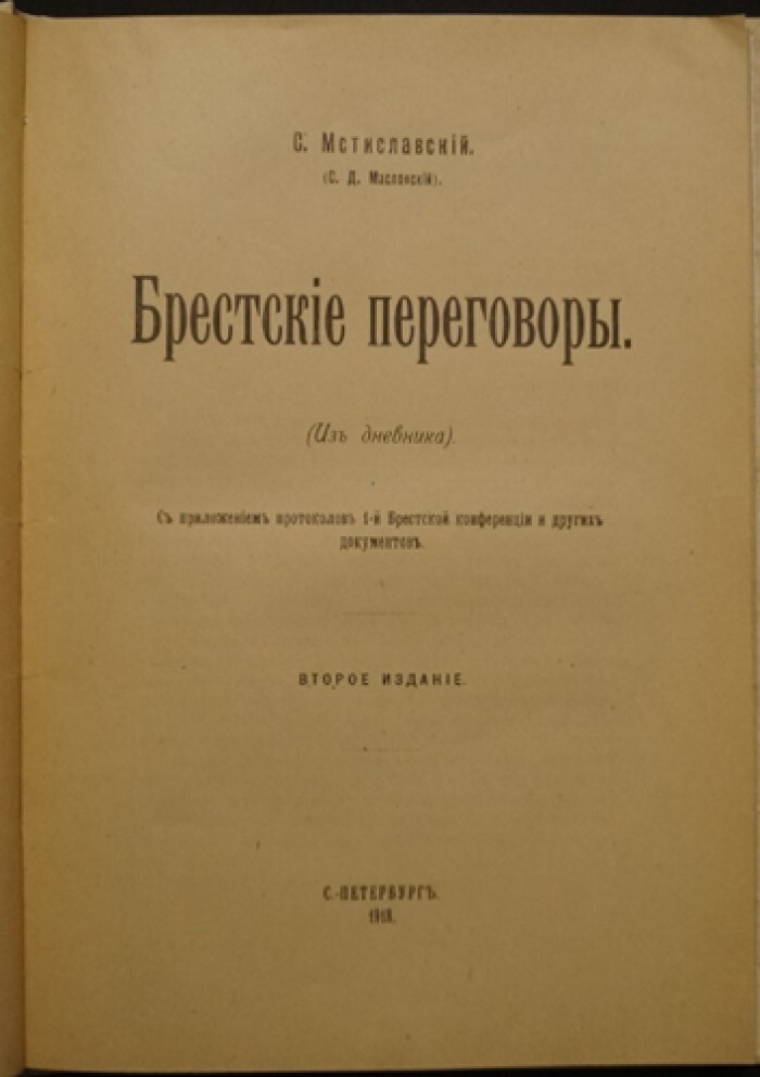 Мстиславский, С. Брестские переговоры. (Из дневника). С приложением протоколов 1-й Брестской конференции и других документов.