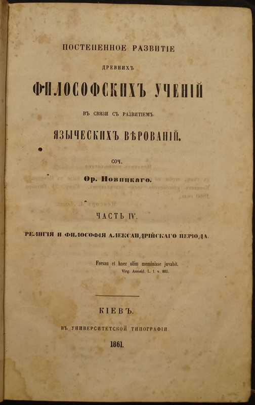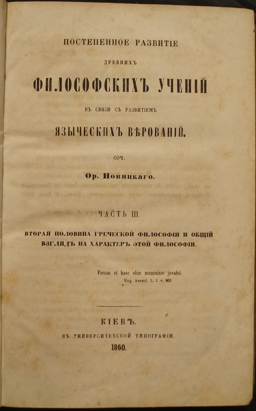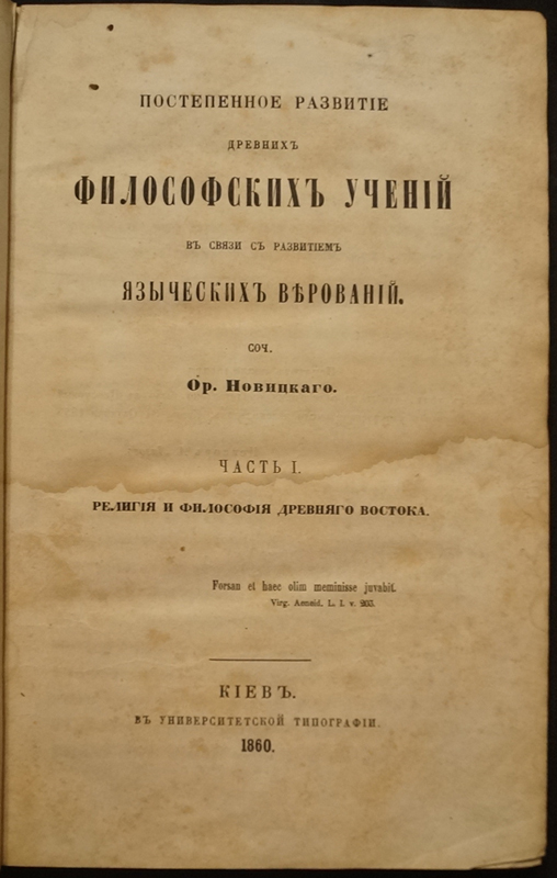Новицкий О. М. Постепенное развитие древних философских учений в связи с развитием языческих верований.4 части.