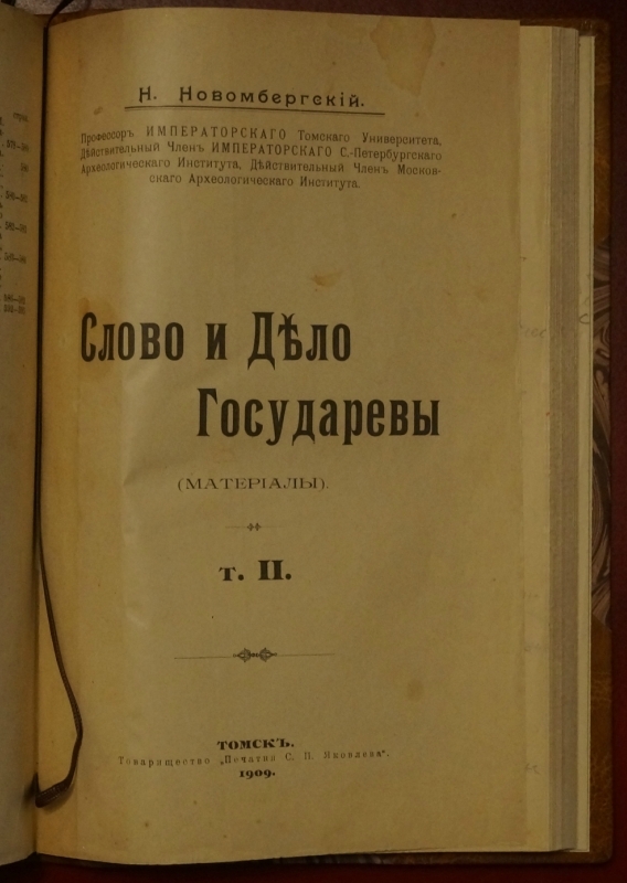 Новомбергский, Н Я. Слово и дело Государевы.