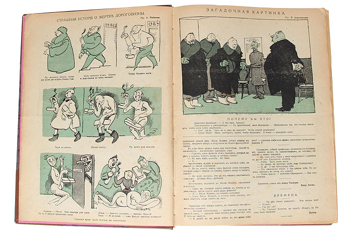 Книга предлагает читателям широкий спектр сатирических материалов, включающих в себя юмористические статьи, пародии, карикатуры, комиксы и другие формы сатиры. Авторы и художники, вкладывавшие свои таланты в журнал, старались высмеивать различные аспекты социальной и политической жизни того времени, создавая критическую и сатирическую картину общества.