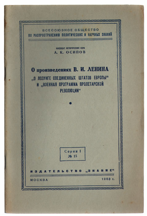 О произведениях В. И. Ленина "О лозунге Соединенных штатов Европы" и "Военная программа пролетарской революции"