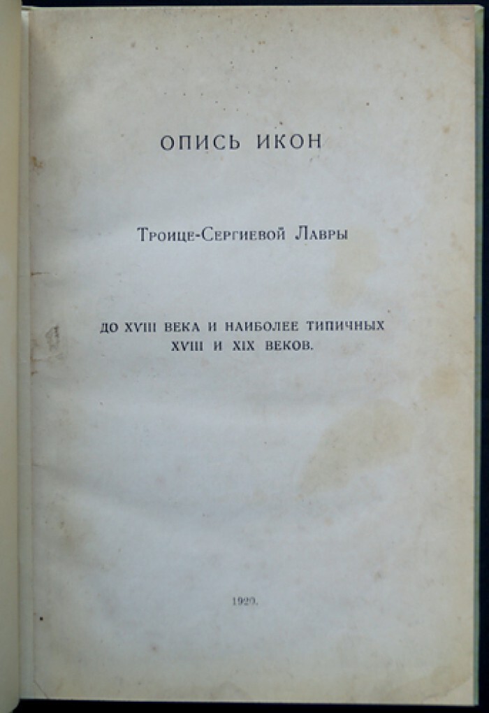 Книга "Опись икон Троице-Сергиевой Лавры до XVIII века и наиболее типичных XVIII и XIX веко" авторства Ю. А. Олсуфьева - исследование и описание коллекции икон, находящихся в Троице-Сергиевой Лавре до XVIII века, а также наиболее типичных икон XVIII и XIX века.