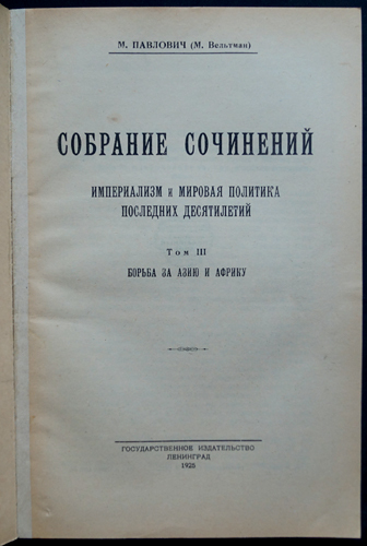 Павлович, М. Собрание сочинений: Империализм и мировая политика последних десятилетий. 9 томов (вышли только 1,2,3,5,7,9)