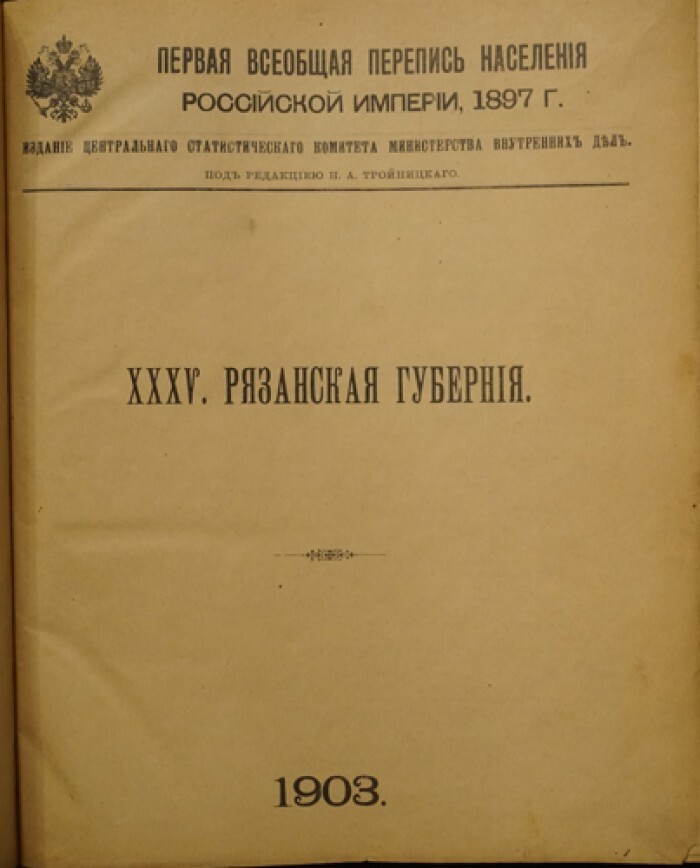 Первая Всеобщая перепись населения Российской Империи, 1897 г. Том XXXV. Рязанская губерния.