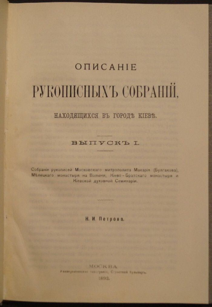 Петров Н.И. Описание рукописных собраний, находящихся в городе Киеве. Выпуск I.