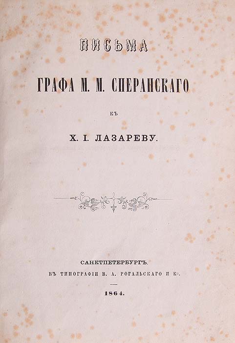 Письма графа М. М. Сперанского к Х. И. Лазареву