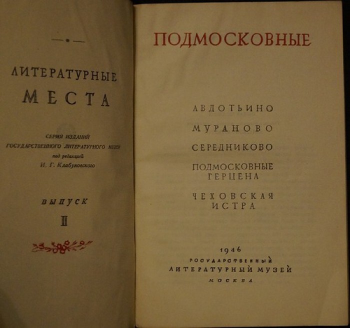 Подмосковные: Авдотьино, Мураново, Середниково, Подмосковные Герцена, Чеховская Истра.