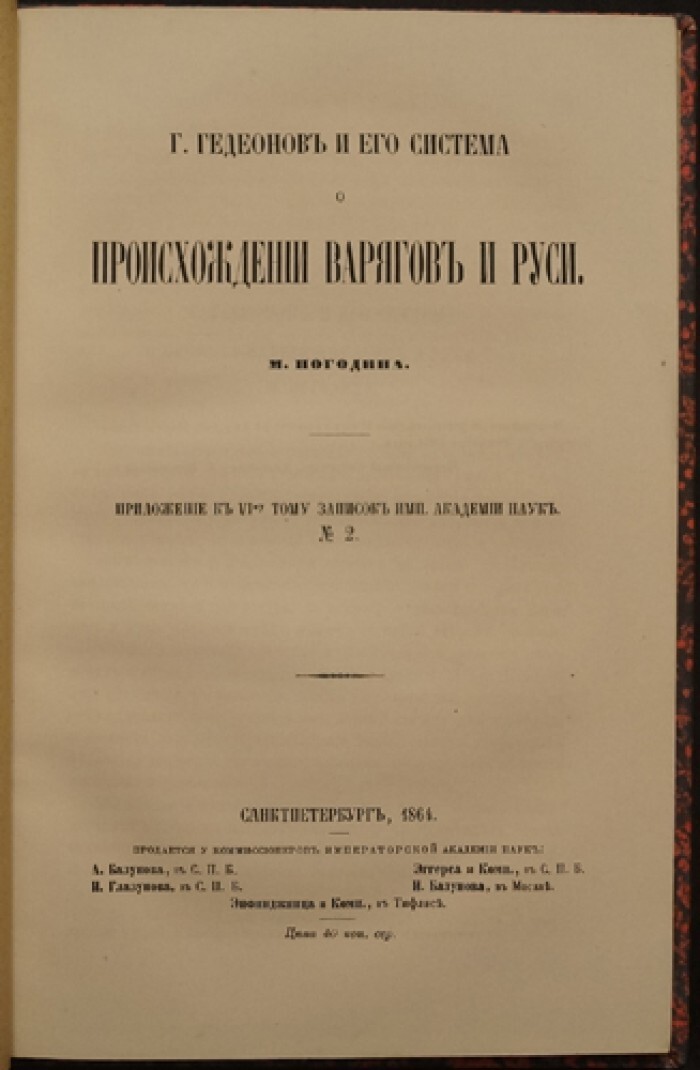 Погодин М.П. Г. Гедеонов и его система о происхождении варягов и Руси