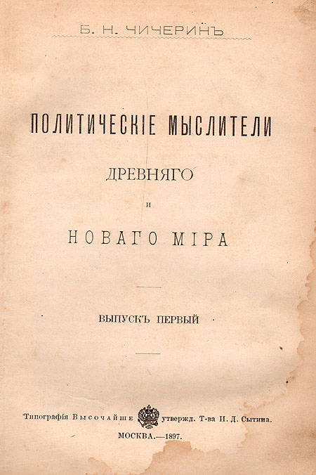 Политические мыслители древнего и нового мира. Выпуск 1
