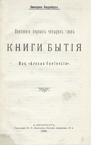 Пояснение первых четырех глав Книги Бытия. Из "Arcana Coelestia"