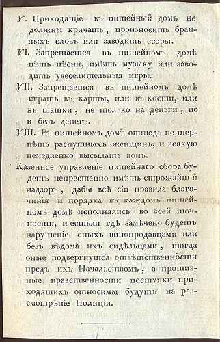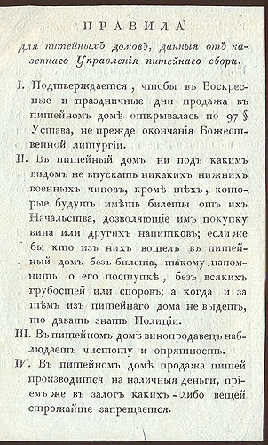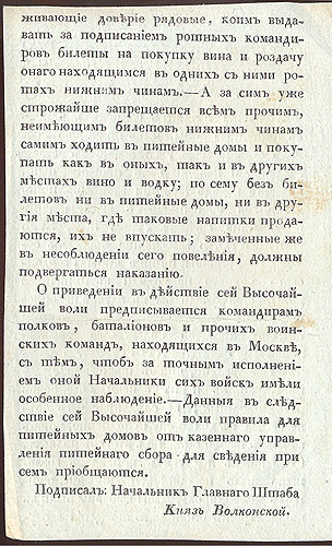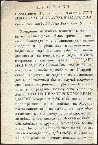 Приказ Начальника Главного Штаба Его Императорского Величества Князя Волконского (про питейные заведения)